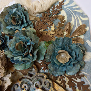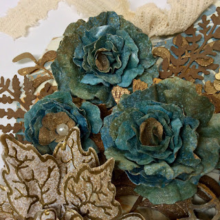 The Cardstock for the making of my roses has been inked front (blue tones) and back (light and gray and blue) .