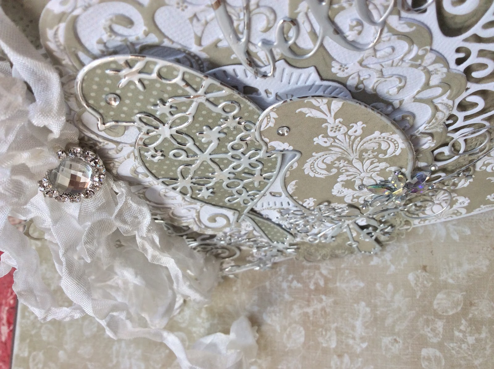 Such a beautiful and elegant card! I love the birds and that background paper is gorgeous! The dies you used and the ribbon are so pretty!